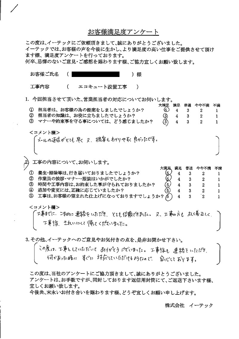 また弊社でご購入の、エコキュート等の給湯器が故障した場合には、基本的に弊社での対応は出張費無料です。そして生活にご不便の無い様に、無料で仮設湯沸し器の貸し出しもさせていただいております。